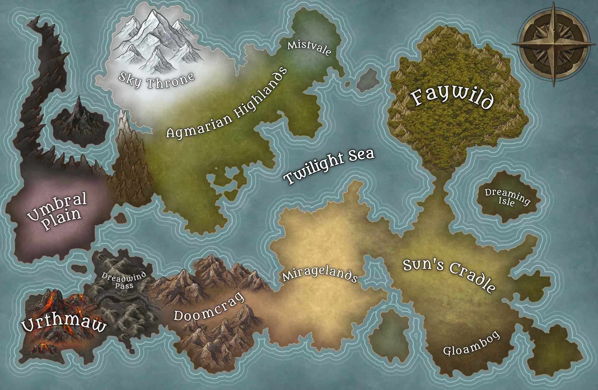 created using adobe photoshop, indesign, inkarnate map maker